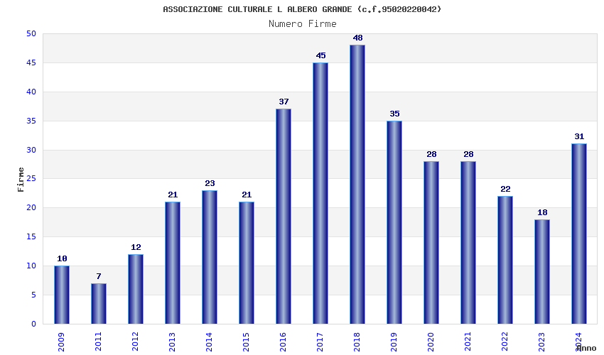 Anno Firme Importi Media Naz. Reg. Prov. Comu.