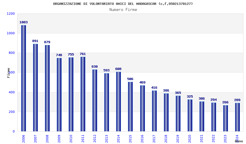 | Anno | Firme | Importi | Media | Naz. | Reg. | Prov. | Comu. |