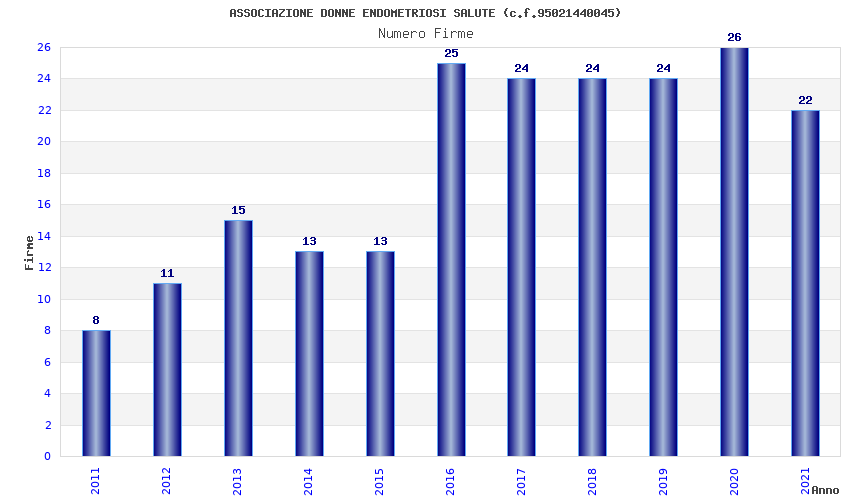 | Anno | Firme | Importi | Media | Naz. | Reg. | Prov. | Comu. |