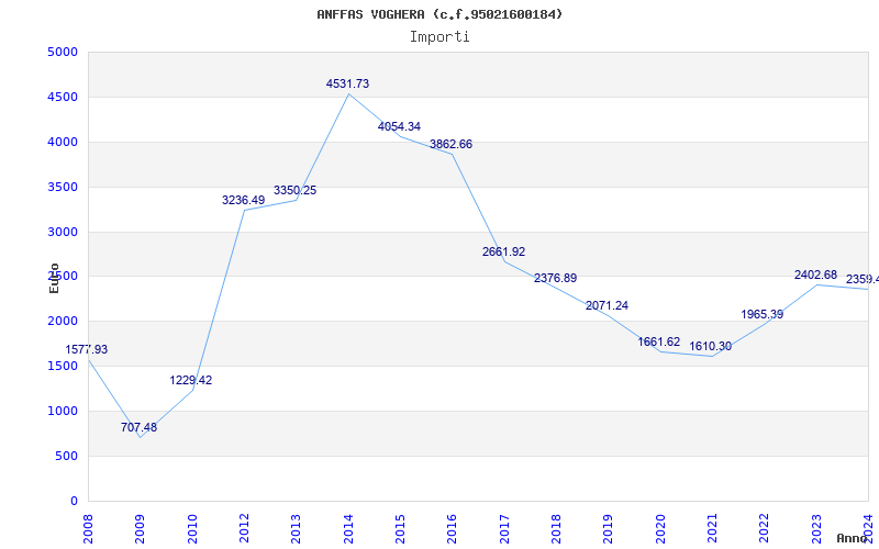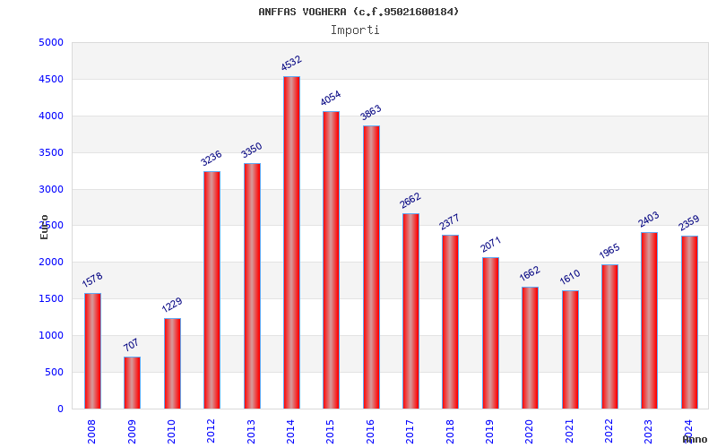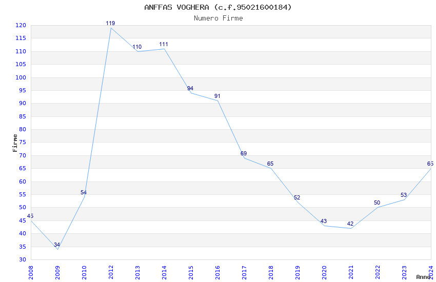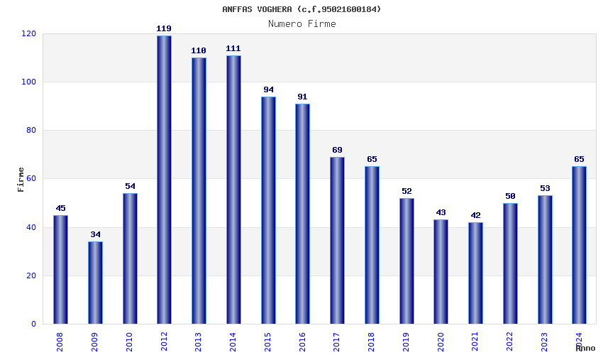 | Anno | Firme | Importi | Media | Naz. | Reg. | Prov. | Comu. |
