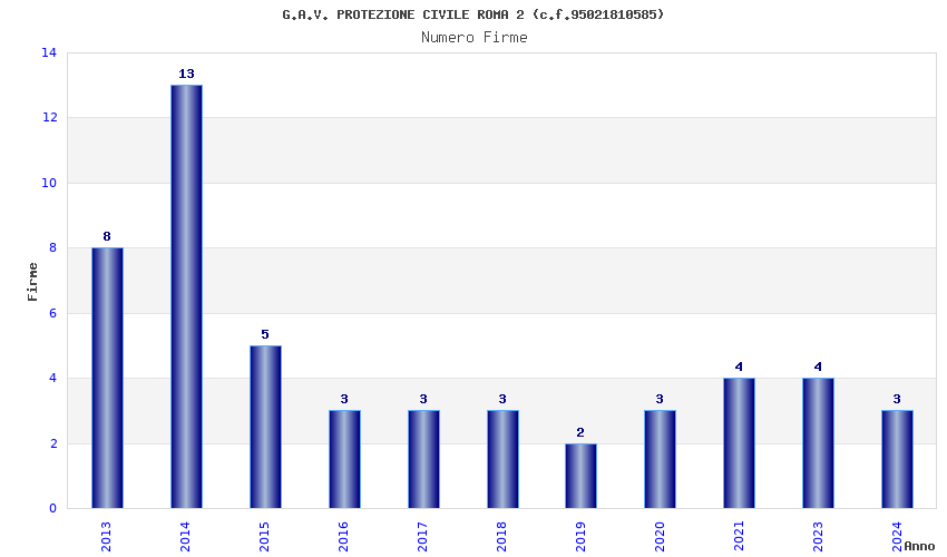 | Anno | Firme | Importi | Media | Naz. | Reg. | Prov. | Comu. |