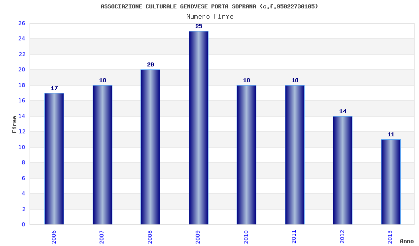 | Anno | Firme | Importi | Media | Naz. | Reg. | Prov. | Comu. |