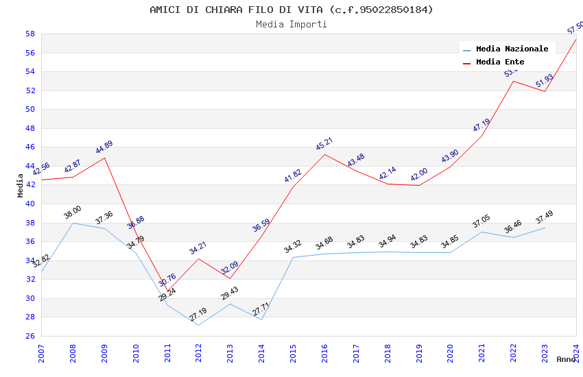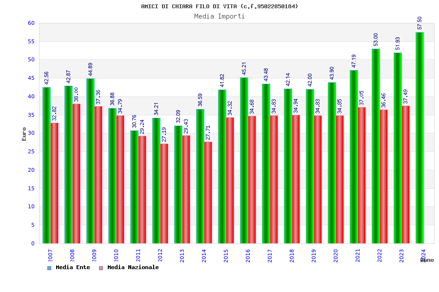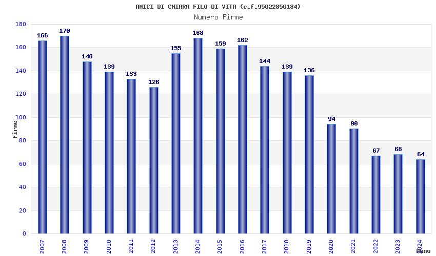 | Anno | Firme | Importi | Media | Naz. | Reg. | Prov. | Comu. |