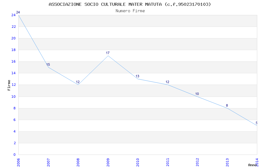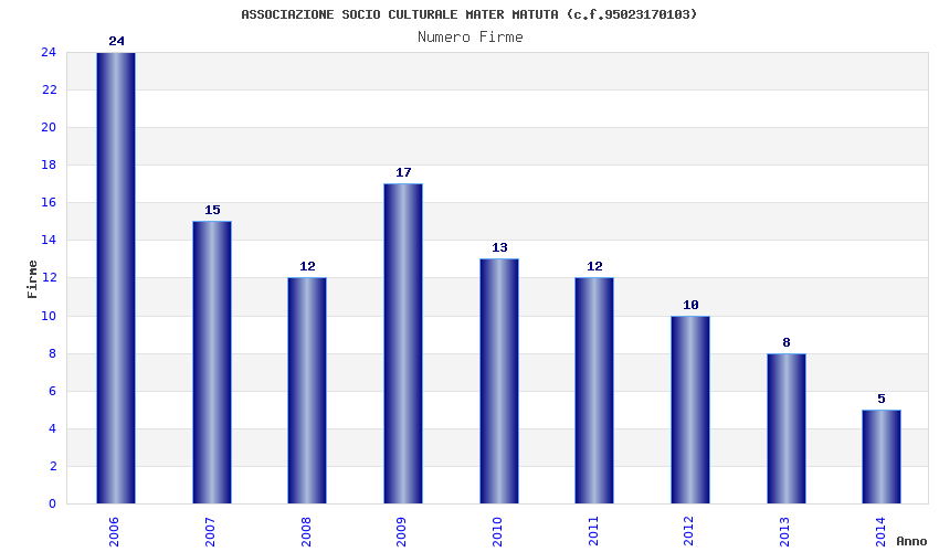 | Anno | Firme | Importi | Media | Naz. | Reg. | Prov. | Comu. |