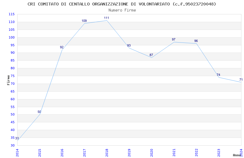 | 2018 | 111 | 2.113,80 | 19,04 | 22.778 | 1.799 | 291 | 5 |