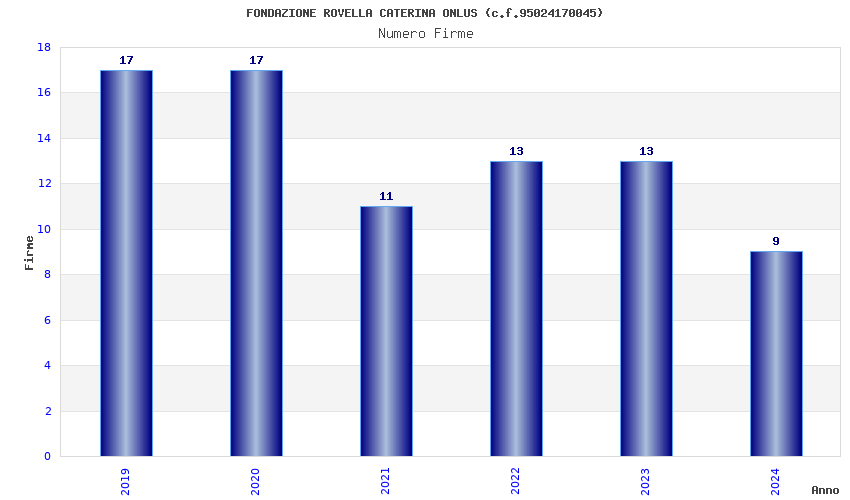 | Anno | Firme | Importi | Media | Naz. | Reg. | Prov. | Comu. |