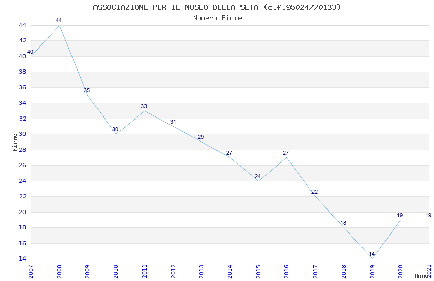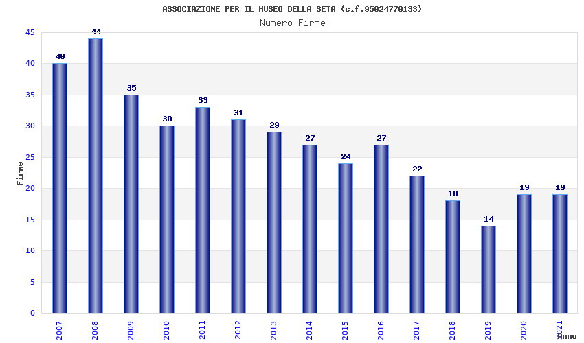 | 2021 | 19 | 727,73 | 38,30 | 41.825 | 8.485 | 505 | 110 |
