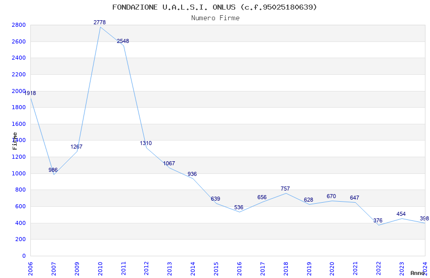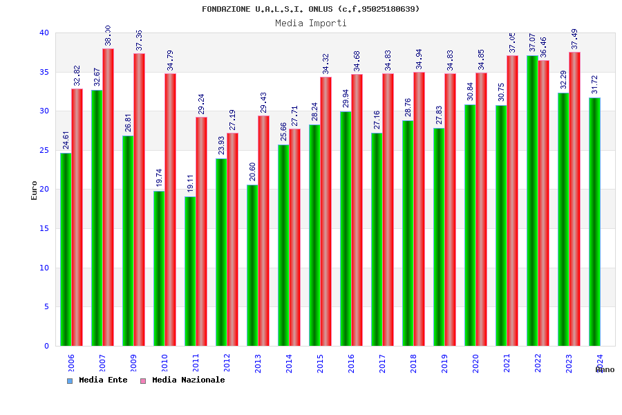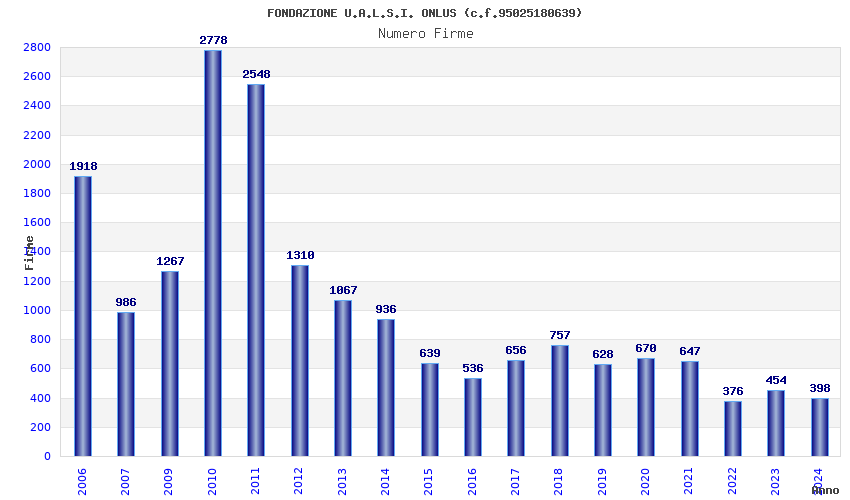 | Anno | Firme | Importi | Media | Naz. | Reg. | Prov. | Comu. |