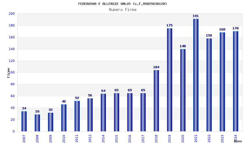 | Anno | Firme | Importi | Media | Naz. | Reg. | Prov. | Comu. |