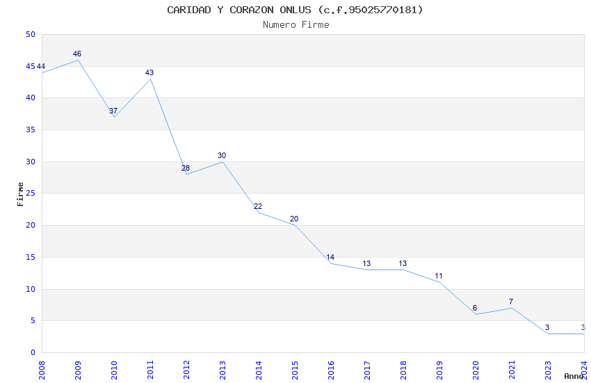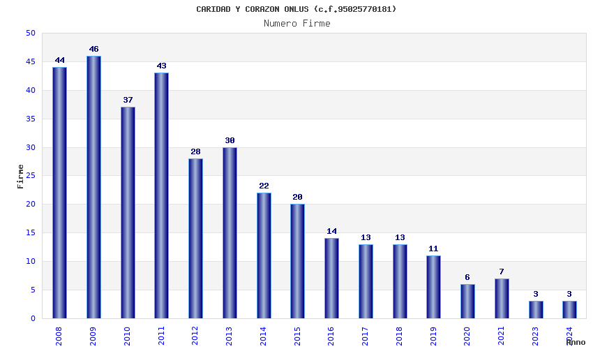 | Anno | Firme | Importi | Media | Naz. | Reg. | Prov. | Comu. |