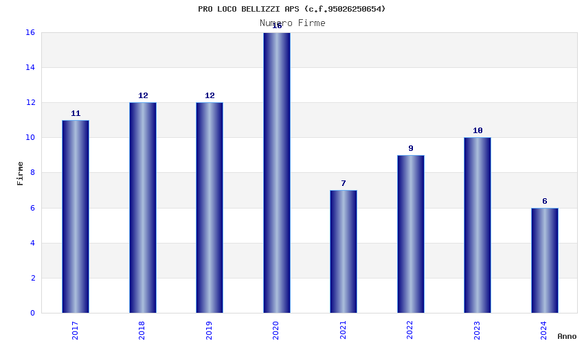 | Anno | Firme | Importi | Media | Naz. | Reg. | Prov. | Comu. |