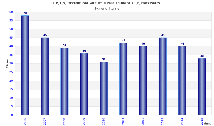 | Anno | Firme | Importi | Media | Naz. | Reg. | Prov. | Comu. |