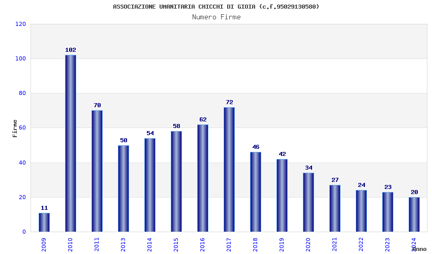 | Anno | Firme | Importi | Media | Naz. | Reg. | Prov. | Comu. |