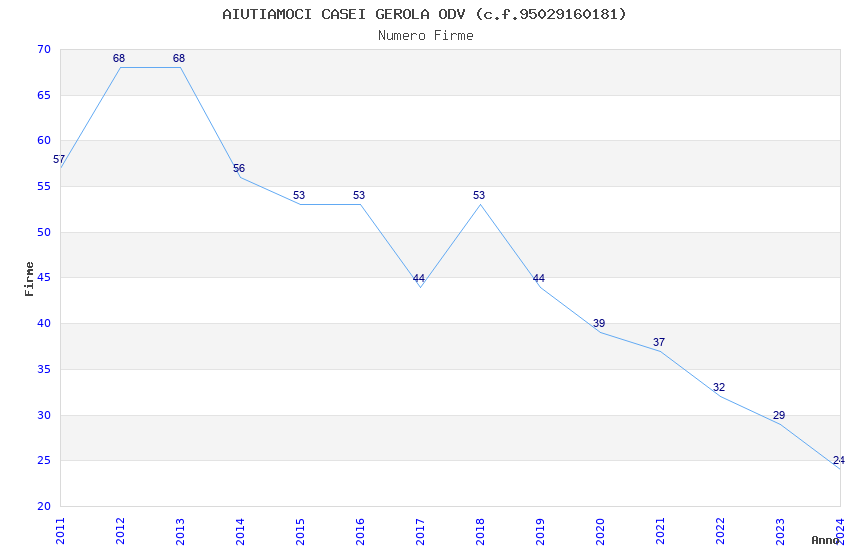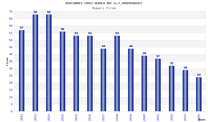 | Anno | Firme | Importi | Media | Naz. | Reg. | Prov. | Comu. |