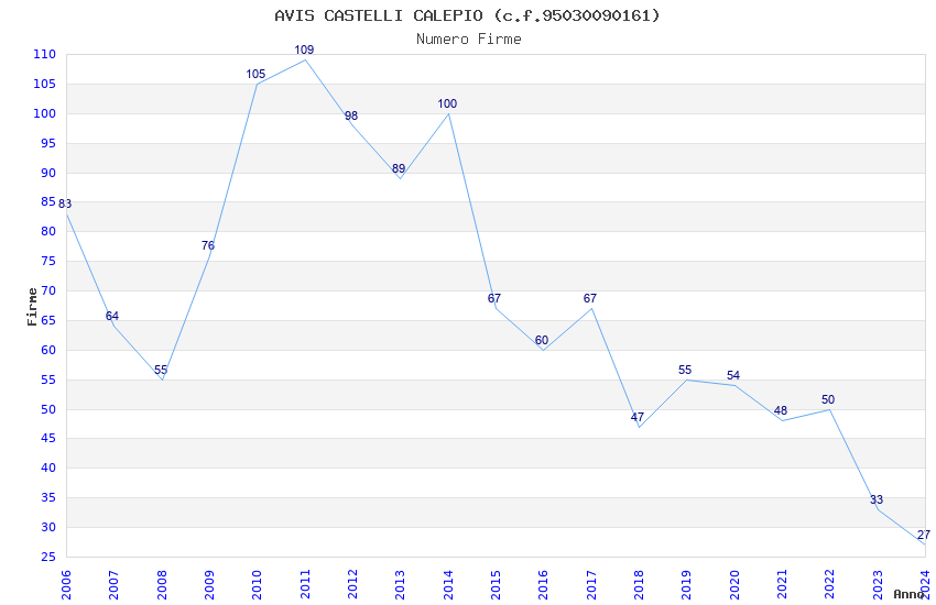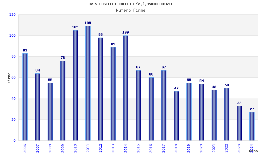 | Anno | Firme | Importi | Media | Naz. | Reg. | Prov. | Comu. |