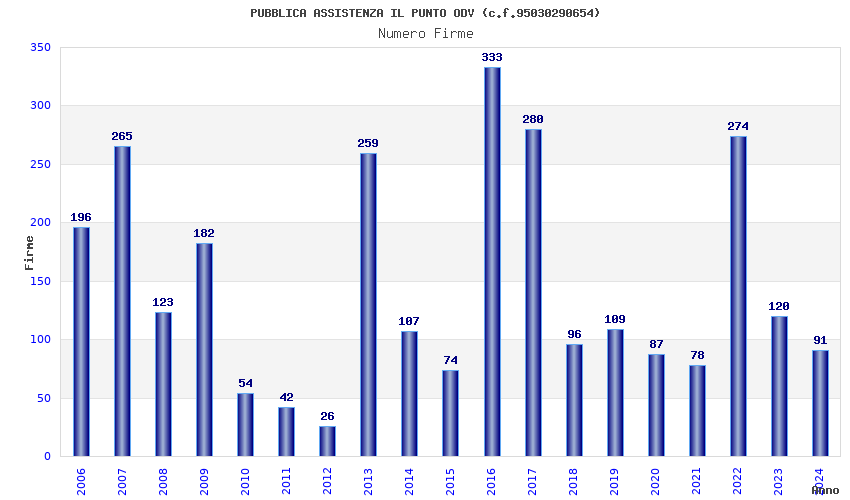 | Anno | Firme | Importi | Media | Naz. | Reg. | Prov. | Comu. |