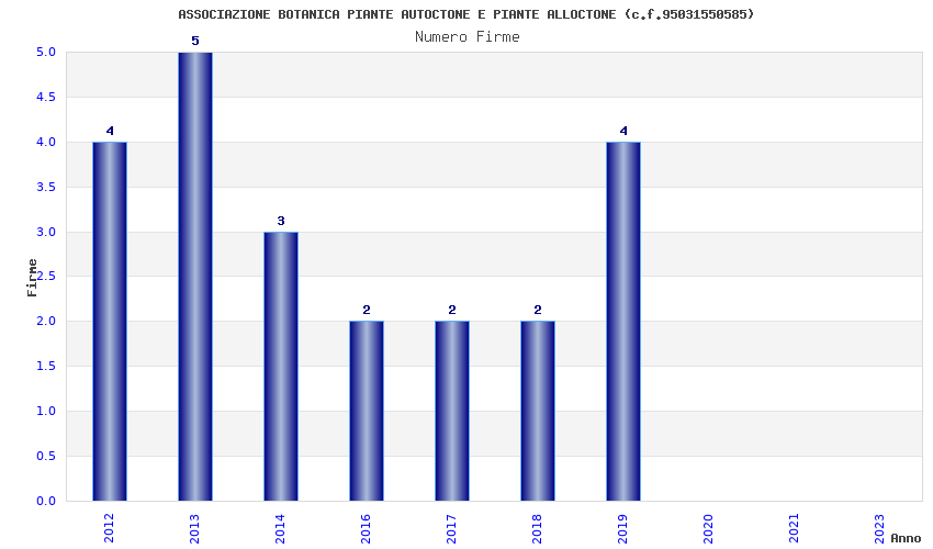 | Anno | Firme | Importi | Media | Naz. | Reg. | Prov. | Comu. |