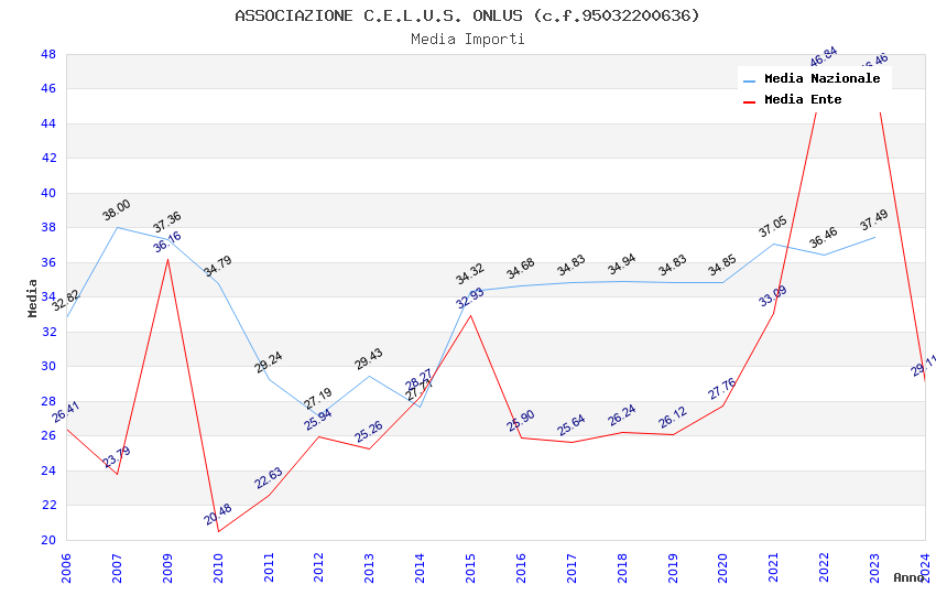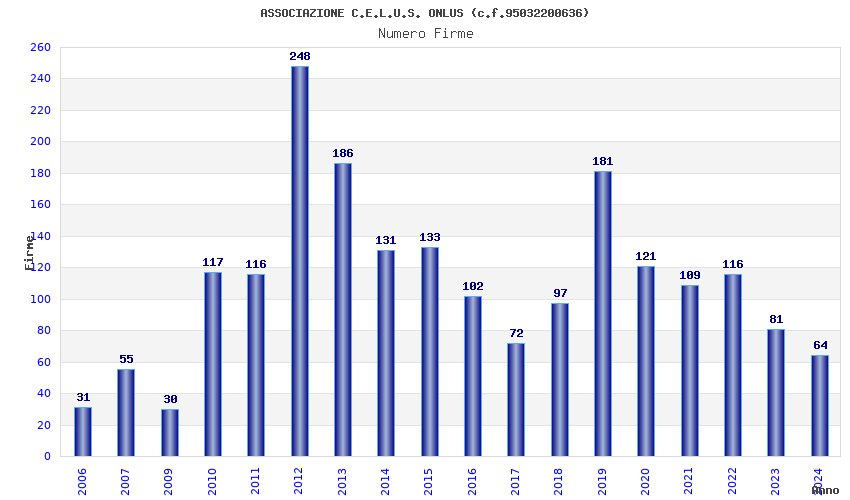 | Anno | Firme | Importi | Media | Naz. | Reg. | Prov. | Comu. |