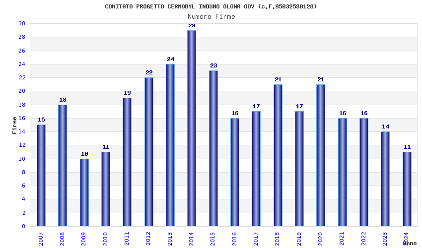 | Anno | Firme | Importi | Media | Naz. | Reg. | Prov. | Comu. |