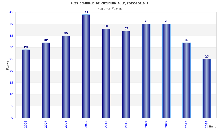 | Anno | Firme | Importi | Media | Naz. | Reg. | Prov. | Comu. |