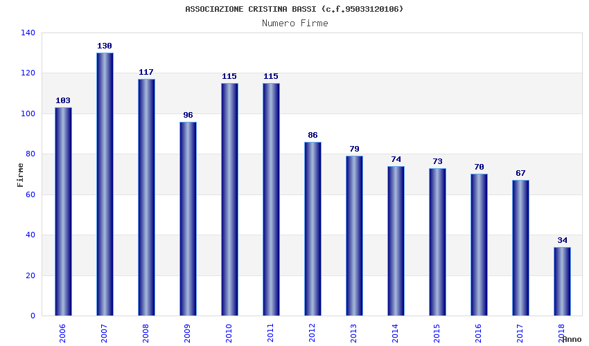 | Anno | Firme | Importi | Media | Naz. | Reg. | Prov. | Comu. |