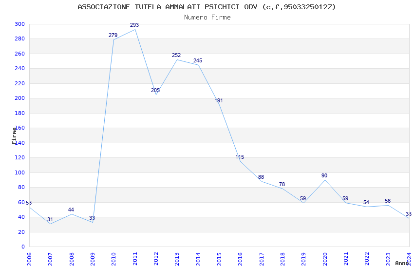 | Anno | Firme | Importi | Media | Naz. | Reg. | Prov. | Comu. |