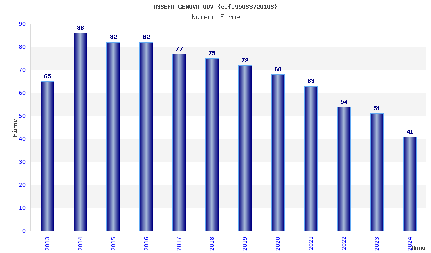 | Anno | Firme | Importi | Media | Naz. | Reg. | Prov. | Comu. |