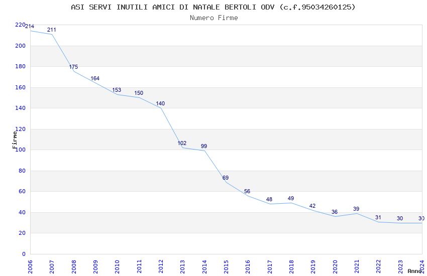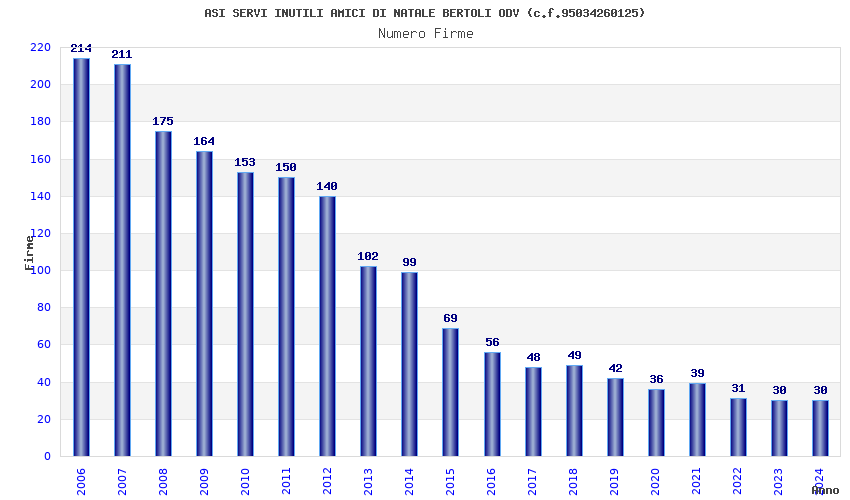 | Anno | Firme | Importi | Media | Naz. | Reg. | Prov. | Comu. |