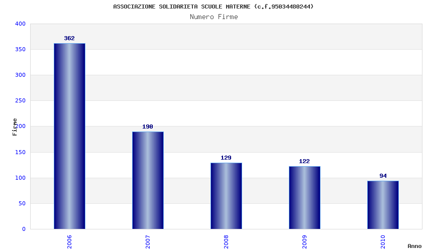 | Anno | Firme | Importi | Media | Naz. | Reg. | Prov. | Comu. |
