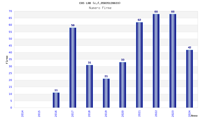 | Anno | Firme | Importi | Media | Naz. | Reg. | Prov. | Comu. |