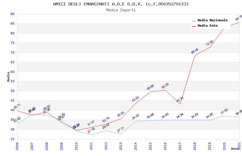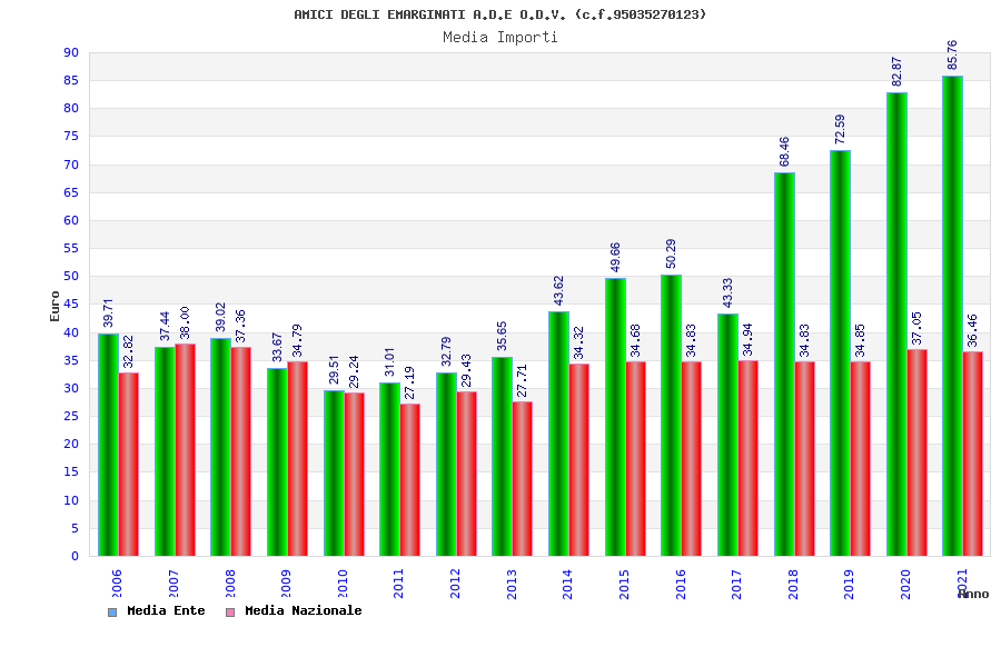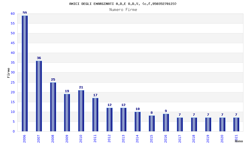| Anno | Firme | Importi | Media | Naz. | Reg. | Prov. | Comu. |