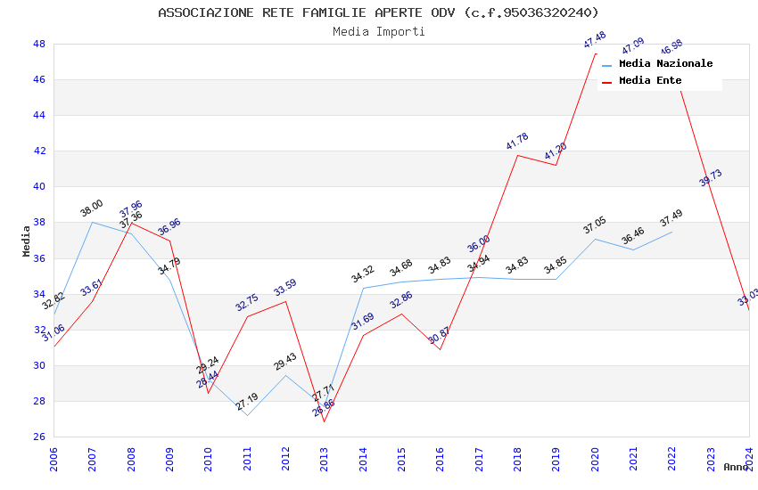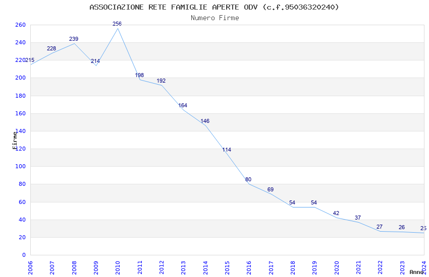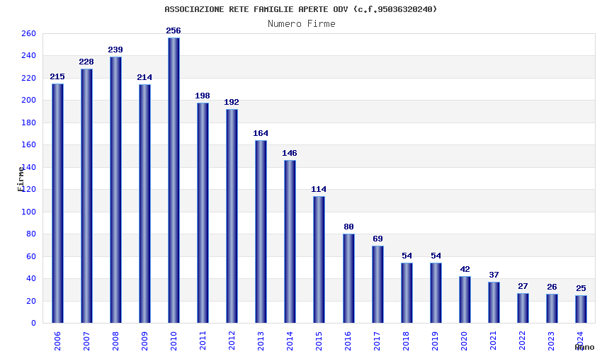 | Anno | Firme | Importi | Media | Naz. | Reg. | Prov. | Comu. |