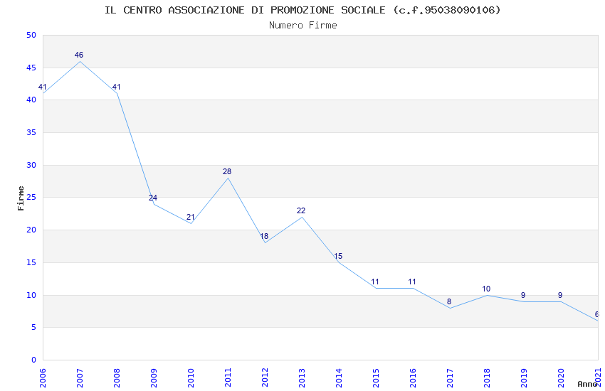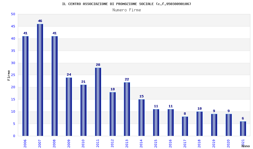 | Anno | Firme | Importi | Media | Naz. | Reg. | Prov. | Comu. |