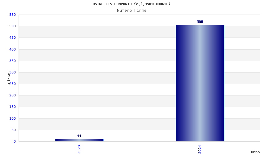 | Anno | Firme | Importi | Media | Naz. | Reg. | Prov. | Comu. |