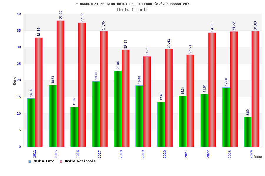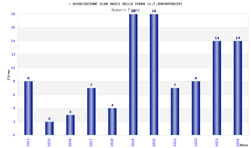 | Anno | Firme | Importi | Media | Naz. | Reg. | Prov. | Comu. |