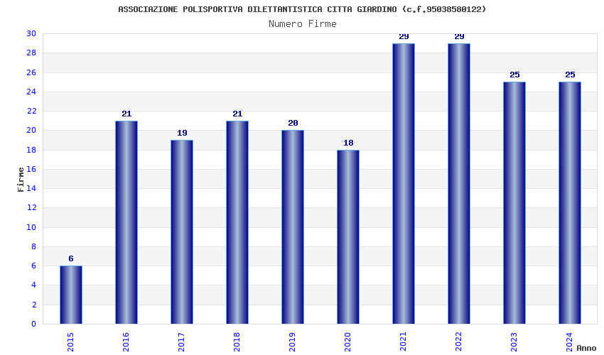 | Anno | Firme | Importi | Media | Naz. | Reg. | Prov. | Comu. |