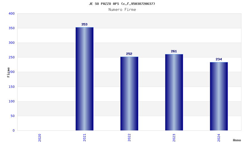 | Anno | Firme | Importi | Media | Naz. | Reg. | Prov. | Comu. |