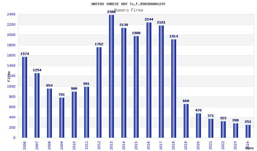 | Anno | Firme | Importi | Media | Naz. | Reg. | Prov. | Comu. |