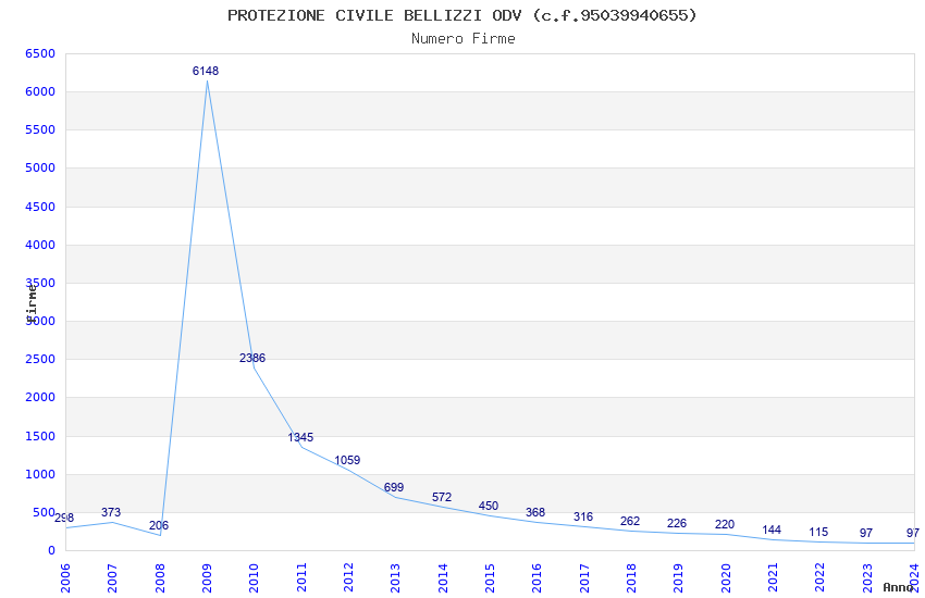 | 2024 | 97 | 2.603,19 | 26,84 | 19.591 | 1.303 | 278 | 2 |
