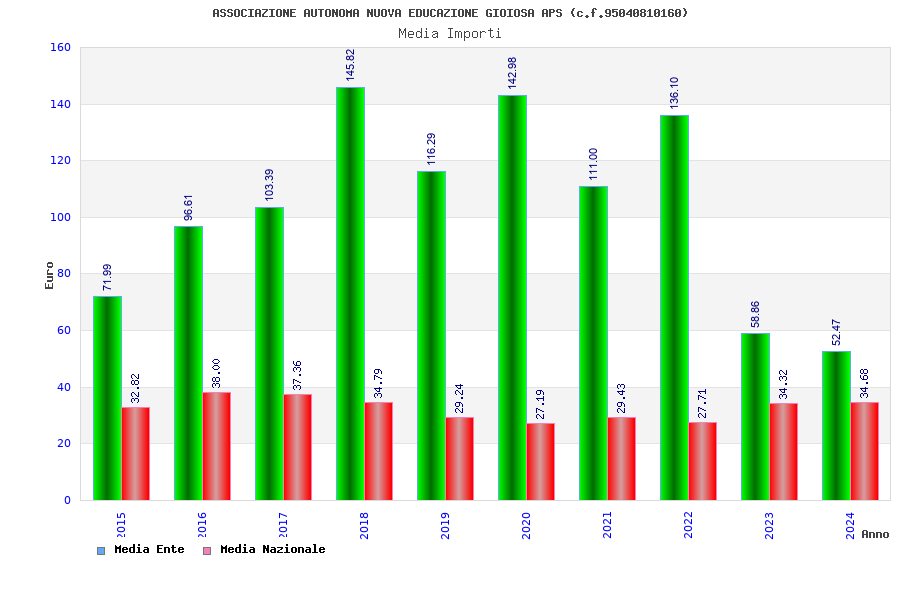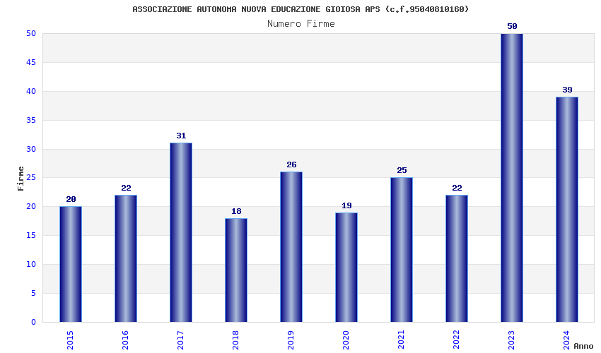 | Anno | Firme | Importi | Media | Naz. | Reg. | Prov. | Comu. |