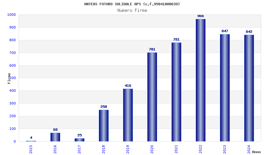 | Anno | Firme | Importi | Media | Naz. | Reg. | Prov. | Comu. |