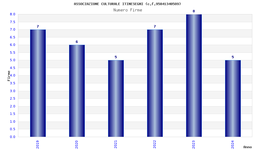 | Anno | Firme | Importi | Media | Naz. | Reg. | Prov. | Comu. |