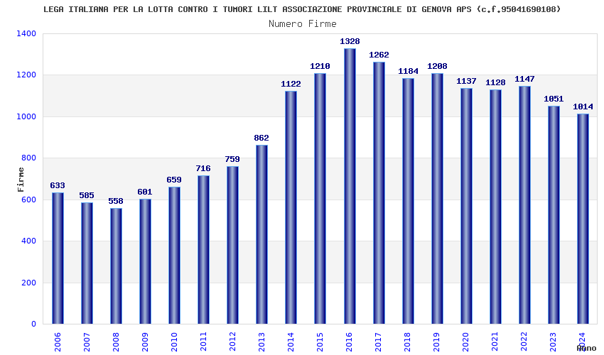 | Anno | Firme | Importi | Media | Naz. | Reg. | Prov. | Comu. |