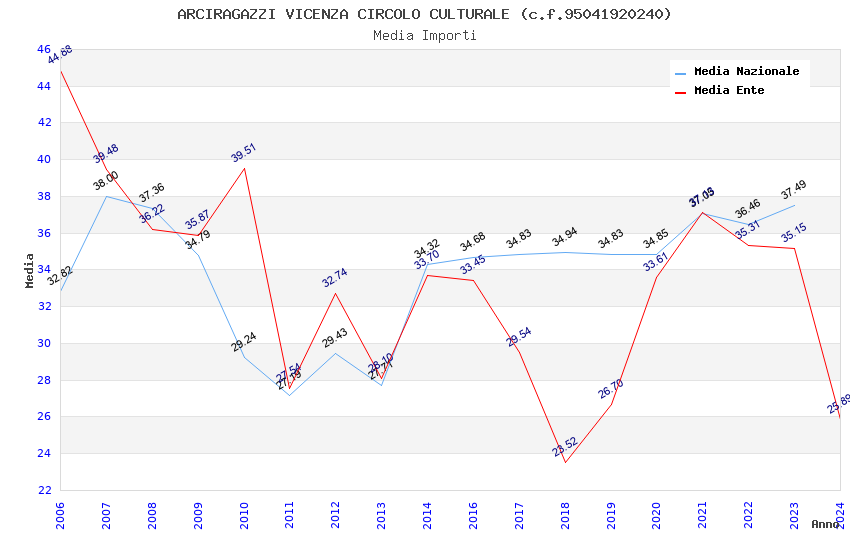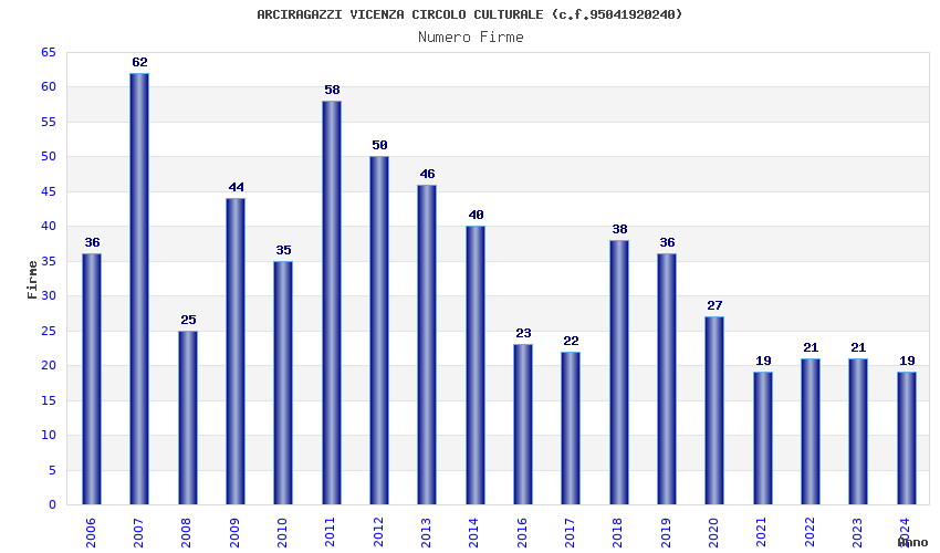 | Anno | Firme | Importi | Media | Naz. | Reg. | Prov. | Comu. |