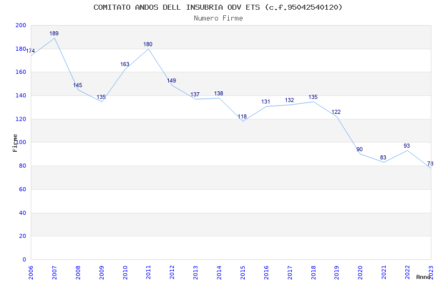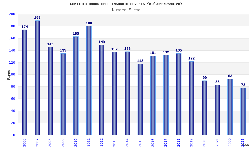 | Anno | Firme | Importi | Media | Naz. | Reg. | Prov. | Comu. |