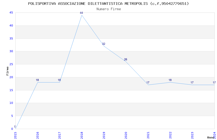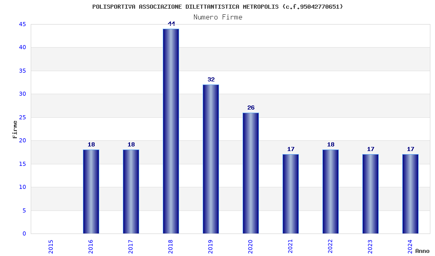 | 2018 | 44 | 2.321,93 | 52,77 | 21.280 | 1.244 | 261 | 73 |