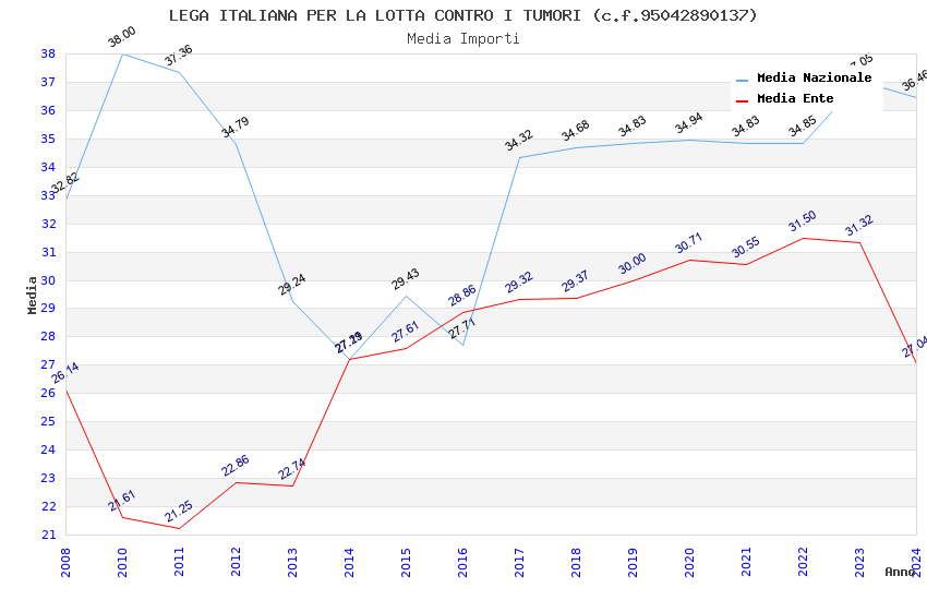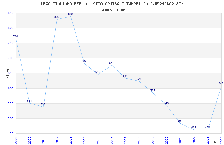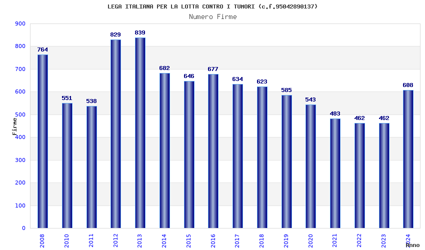 | Anno | Firme | Importi | Media | Naz. | Reg. | Prov. | Comu. |