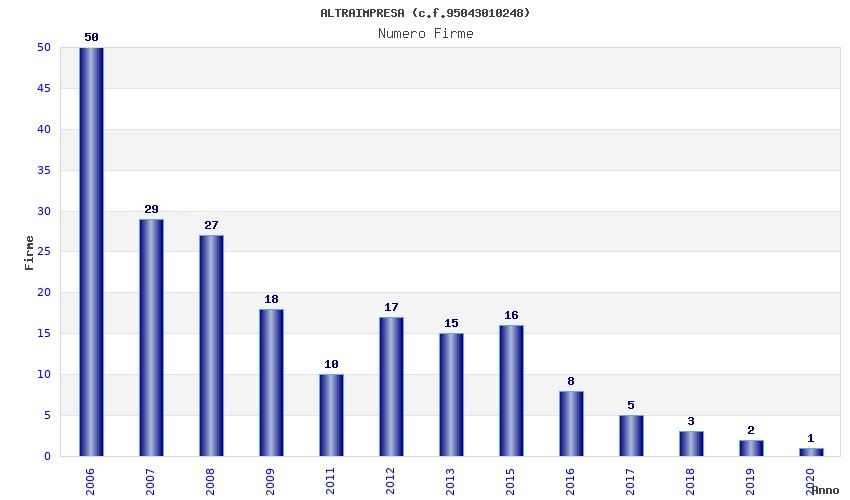 | Anno | Firme | Importi | Media | Naz. | Reg. | Prov. | Comu. |