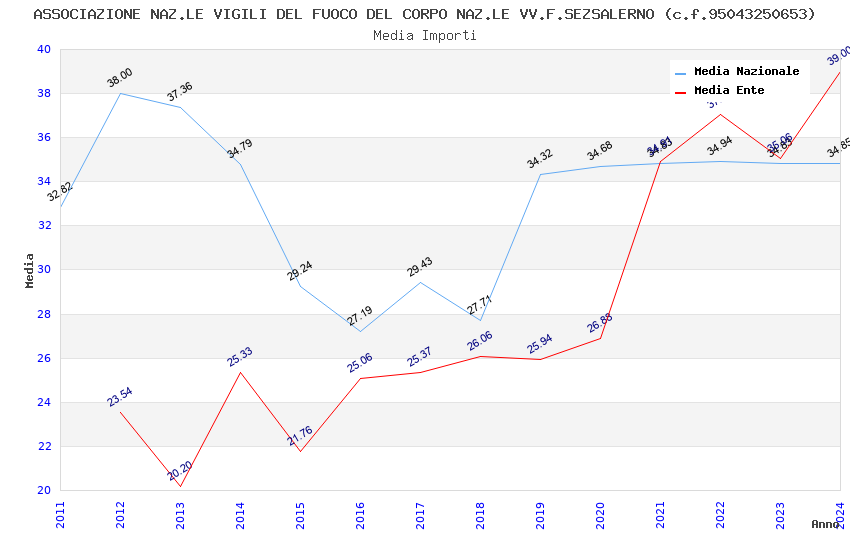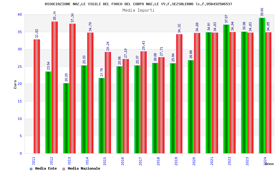 | Anno | Firme | Importi | Media | Naz. | Reg. | Prov. | Comu. |