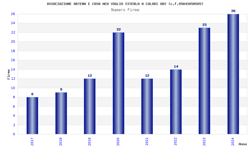 | Anno | Firme | Importi | Media | Naz. | Reg. | Prov. | Comu. |